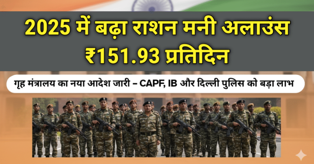 2025 में बढ़ा राशन मनी अलाउंस – CAPF, IB और दिल्ली पुलिस के जवानों के लिए बड़ी खुशखबरी